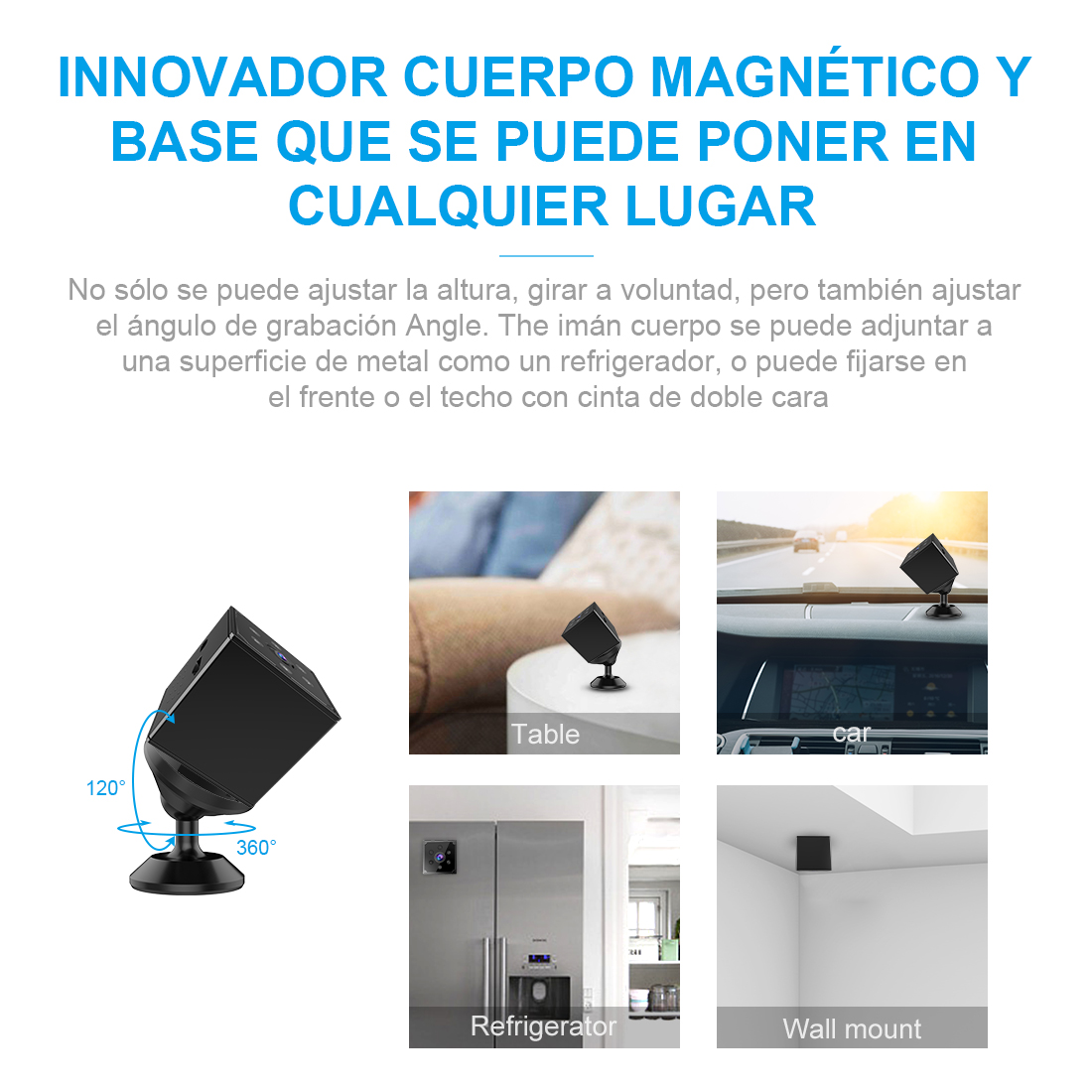 ◆ 【Pequeño tamaño, de muchos usos】Es la camara espia más pequeña del mundo, su longitud del cuerpo es de solo 1.3 pulgada, no es fácil descubir y destruir la camara espia sino fácil ocultarla. Realiza el verdadero diseño inalámbrico, no se requieren cables de red ni cables de corriente y es muy fácil instalarla. Por su cuerpo magnético, usted puede ponerla en culaquier superficie.